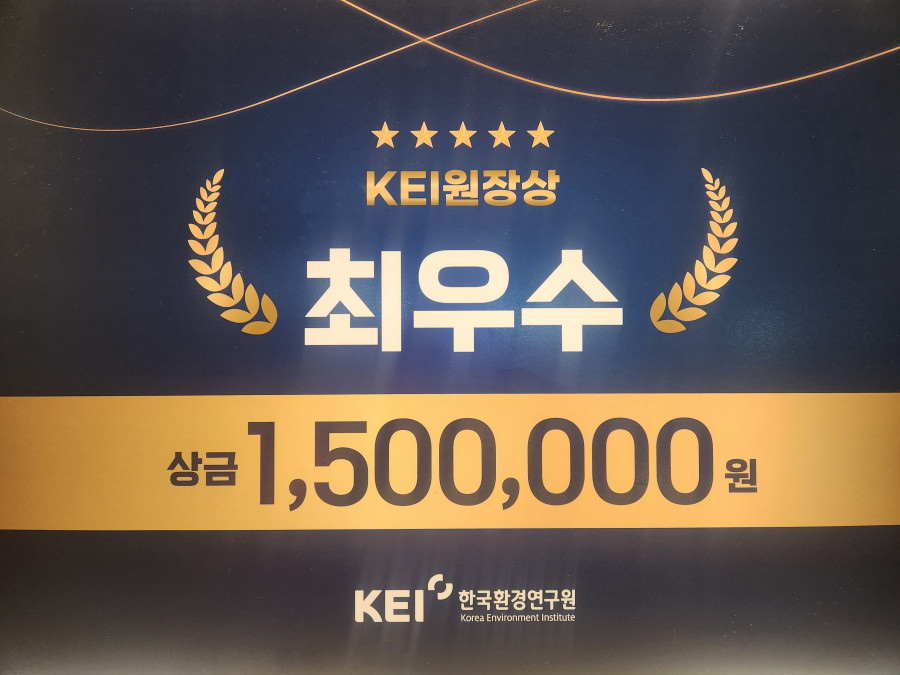 이은미 학생(지도 교수: 감종훈)이 2024년도 한국환경연구원 환경 데이터 분석(활용) 아이디어 공모전 최우수상 (상금: 150만원)을 수상하였습니다. 한국환경연구원 환경 데이터 분석(활용) 아이디어 공모전에 환경관련 데이터의 분석(활용)을 통하여 수요자 중심의 환경 문제 해결을 위한 아이디어 공모전입니다. 공모 분야는 기후, 대기, 물, 국통/자연, 자원순환, 환경경제/사회, 환경보건, 국제협력 환경평가 등 환경 문제 해결 분야입니다. 이은미 학생의