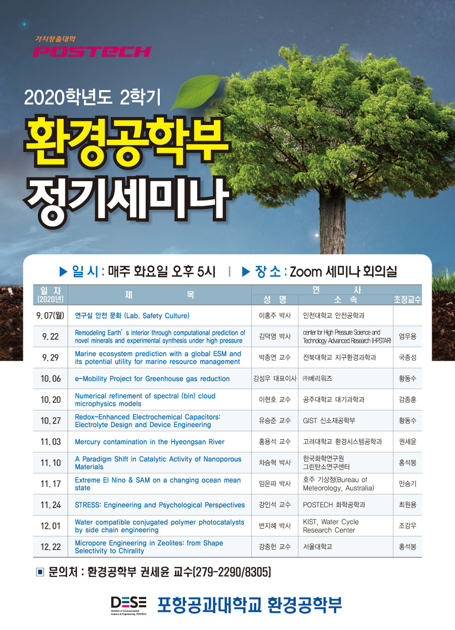 2020-2학기 환경공학부 정기 세미나 작성일 25-11-24 00:30 페이지 정보 일시 매주 화요일 17시 ~ 18시 15분 발표자 문의 279-8303 / dese@postech.ac.kr 본문 목록 이전글2021-1학기 환경공학부 정기 세미나 25.11.24 다음글2020-1학기 환경공학부 정기 세미나 25.11.24 댓글 0 댓글목록 등록된 댓글이 없습니다.