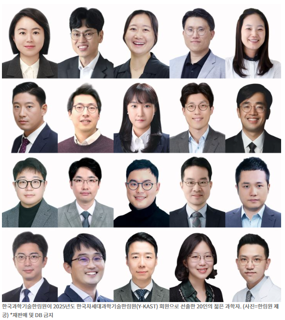 [서울=뉴시스]윤현성 기자 = 한국과학기술한림원은 과학기술 분야에서 탁월한 연구 성과를 발표하며 두각을 나타내고 있는 젊은 과학자 20인을 2025년도 한국차세대과학기술한림원(Y-KAST) 회원으로 선출했다고 17일 밝혔다.