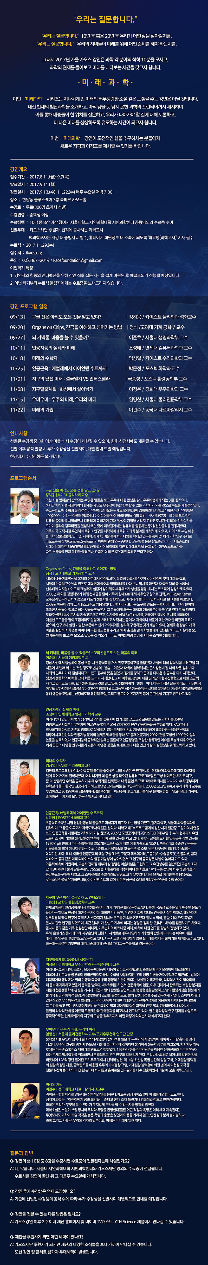 국종성 교수, 카오스재단 '미래과학'강연(11/1)