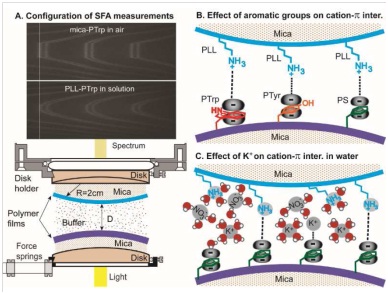 교육과학기술부와 국토해양부는 포항공과대학교 해양대학원/환경공학부 황동수 교수팀이 표면 힘 측정기(Surface force apparatus, SFA)를 이용하여 물속에서의 Cation-π 결합을 나노 역학적으로 세계 최초로 증명했다고 밝혔다이번 연구 결과는 교육과학기술부 해양극지 기초·원천기술개발 사업의 과제를 수행하는 포스텍 황동수 교수(35)와 오동엽(28세 박사과정), 포스텍 물리학과 조용석 교수 등의 공동연구를 통해서 세계 최초로 밝혀졌으며화학분야의 권위지인 '앙게반테 케미(Angewandte Chemie)온라인 판에 2 28일 게재되었다. (논문명 : Nanomechanics of Cation-pi Interactions in Aqueous Solution)자연계에서 비공유 결합(수소결합이온결합(ionic interaction), 반데르발스 결합 (Van der Waals interaction) )의 대부분은 물 속에서 수화작용 때문에 그 힘이 약해지만, Cation-π 결합은 그 힘이 물속에서도 강하게 존재하기 때문에 수중의 많은 생리현상에 있어 중요한 요소로 작용하고 있다고 알려져 있으며이전까지는 컴퓨터 시뮬레이션에 의해서만 그 힘이 예측되어 왔다연구진은 인간의 학습과 기억에 매우 중요한 신경전달물질(neurotransmitter)인 ‘아세틸콜린’이 뇌의 아세틸콜린 수용체에 Cation-π로 강하게 결합하는 지를 실험으로 입증하였으며양이온과 벤젠닝을 다량 함유하고 있는 해양 부착성 생명체테트라에틸암모늄 화합물이 이온 채널과 신경전달 수용체 등과 Cation-π 결합으로 얼마나 강하게 결합하는지를 실험적으로 증명하였다.