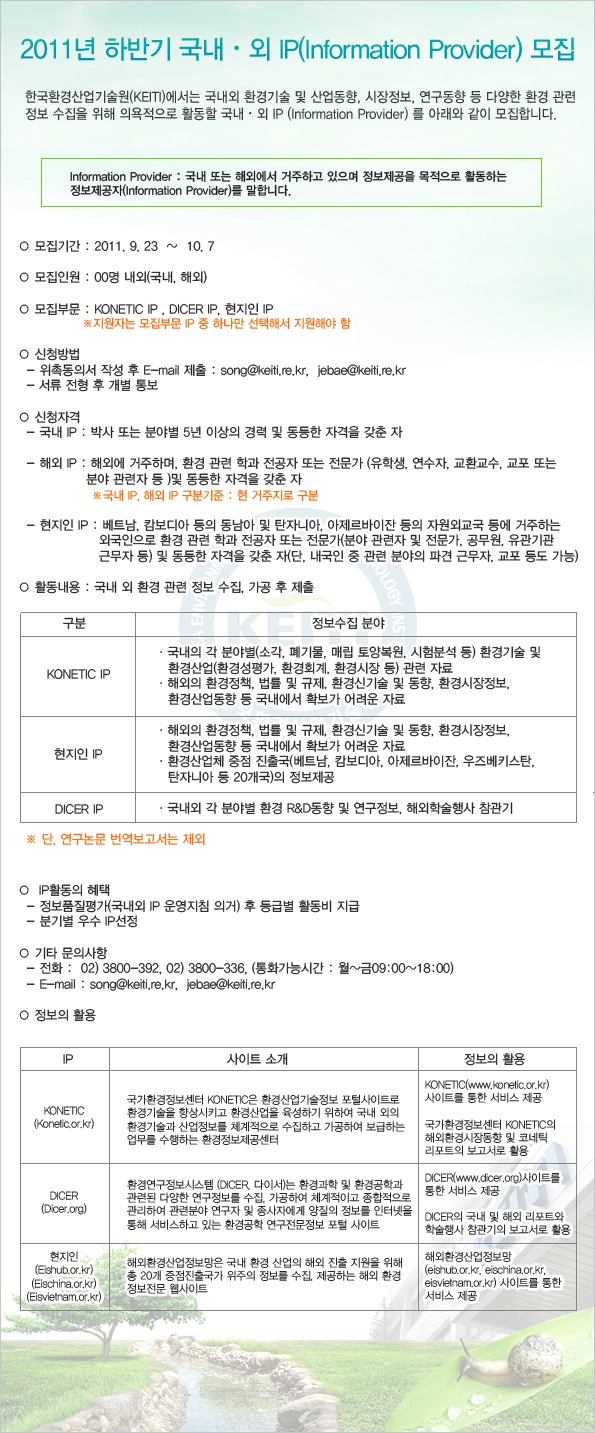 2011년 하반기 국내외 IP(Information Provider) 모집