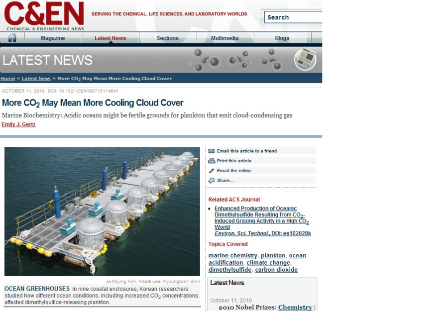 이번 연구 결과는 미래 해양의 이산화탄소 농도 상승이 동물플랑크톤의 섭식률에 영향을 주어 구름의 응결핵으로 작용할 수 있는 기후냉각가스(Dimethylsulfide)의 생성 증가를 가져올 수 있다는 가능성을 제시한 것으로환경분야 최고 권위의 과학 전문지 Environmental Science & Technology 온라인 판(2010년 9월 30)에 발표되었고미국화학회 소식지인 Chemical & Engineering News 최신호에 게재되었다.